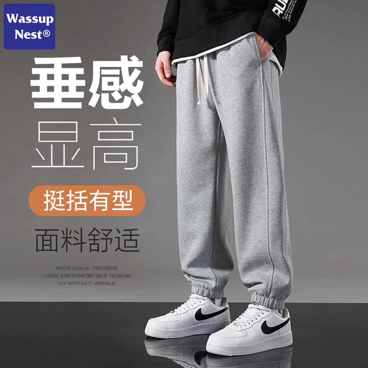 WASSUPNEST ヘビーウェイトコットン スポーツパンツ メンズ 春秋 ジョガーパンツ メンズ アメリカンスタイル ルーズフィット スウェットパンツ トレンド カジュアルパンツ