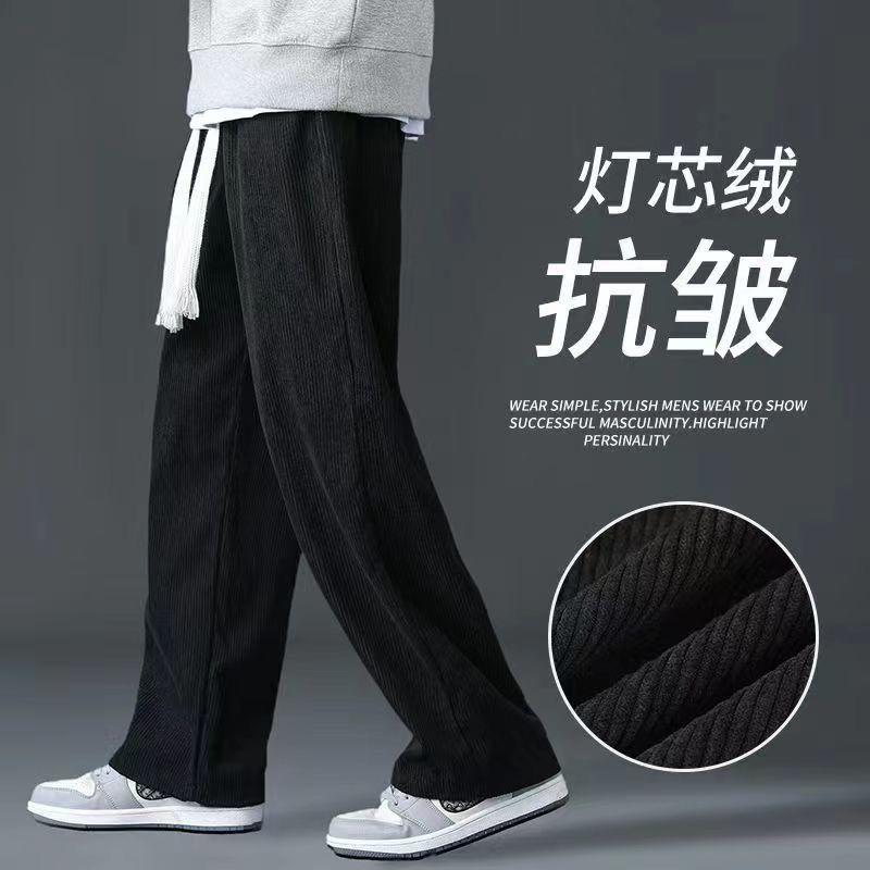 春と秋の新作コーデュロイカジュアルパンツメンズトレンディな多用途ルーズストレートパンツメンズドレープスポーツパンツ