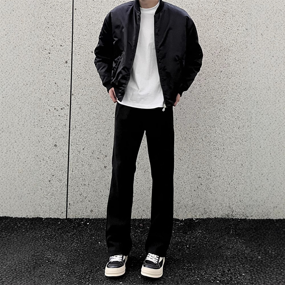 男の子用秋冬ストレートパンツ、ゆったり作業着カジュアルパンツ、テーパードトレンドブランド無地ワイドパンツ、厚手黒パンツ