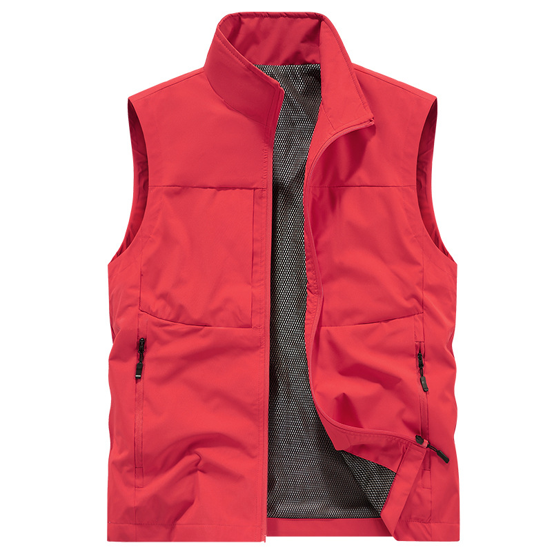 春と夏のポリエステルクロスボーダーベストカジュアルメンズスタンドカラーマルチポケットワークトップ屋外写真釣りチョッキ