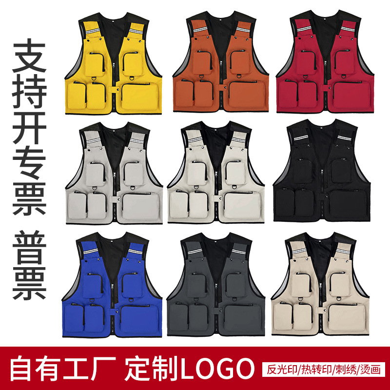 馬甲オーダーメイドロゴ撮影記者監督馬挟みアウトドア登山宣伝ベスト多ポケット作業服