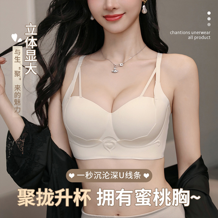 クロスボーダー光沢のある大きいサイズのプッシュアップブラ、アンチドロップ、薄型、深いVネック、女性用セクシーな下着、ジャンプサイズ配送
