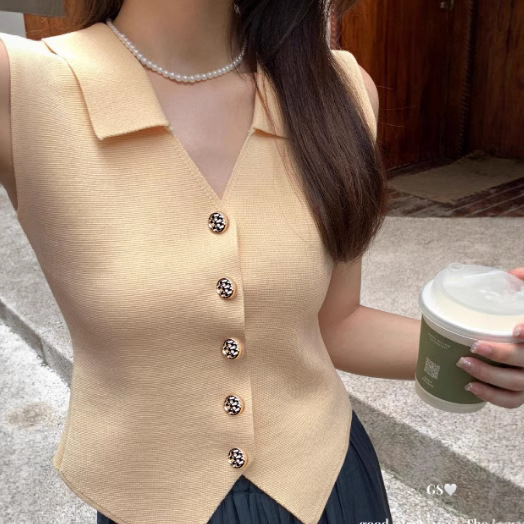 夏の気質の中にニットのセーターを着て、半高襟のキャミソールの短い上着を着て、袖なしの乙鳥を着ます。