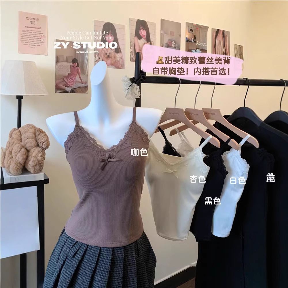 【メーカー直販】甘いレースの縁にストラップのベストをつなぎます。