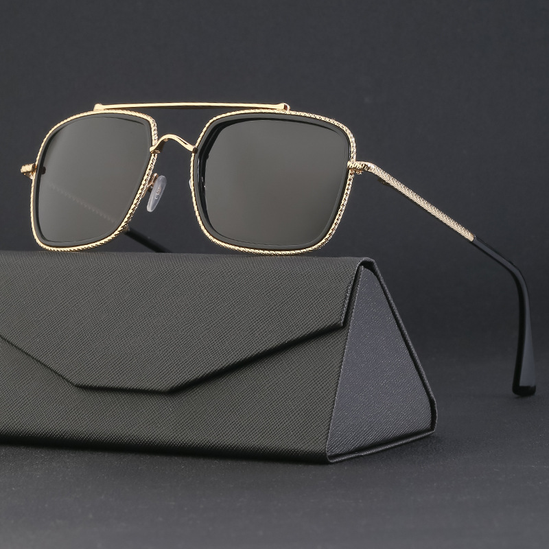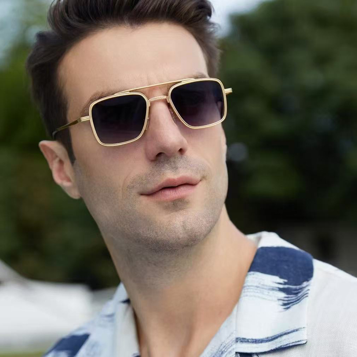 偏光サングラスメンズヨーロッパとアメリカのレトロなダブルビームスリングショットスクエアフレームサングラスメンズトレンディなサングラス