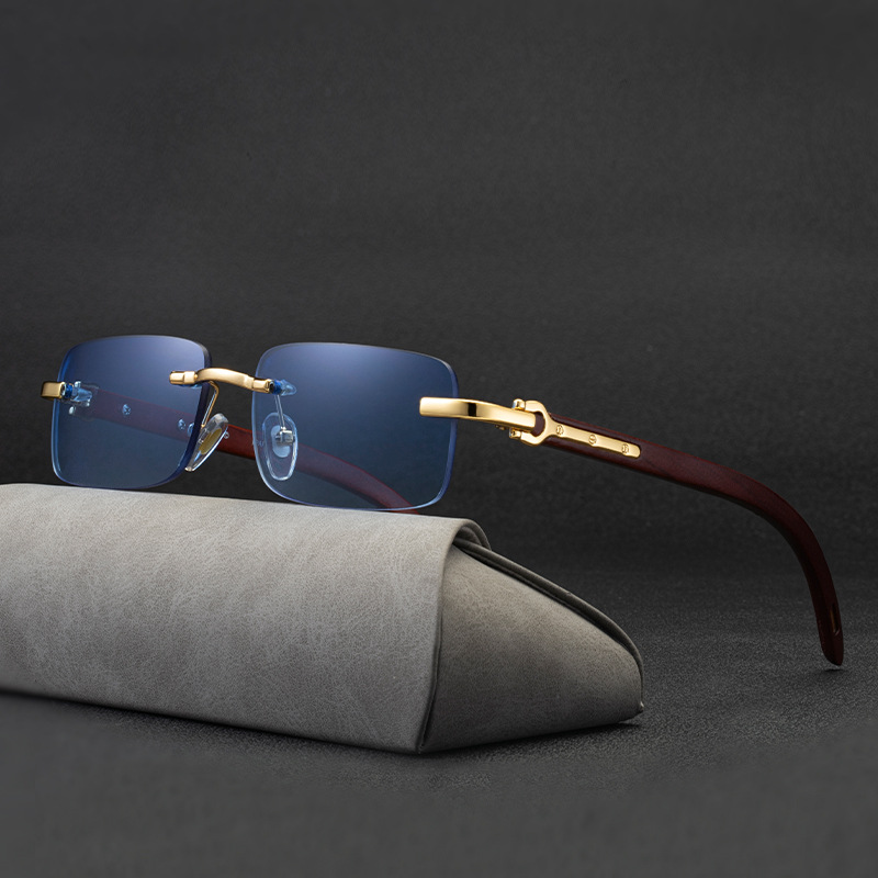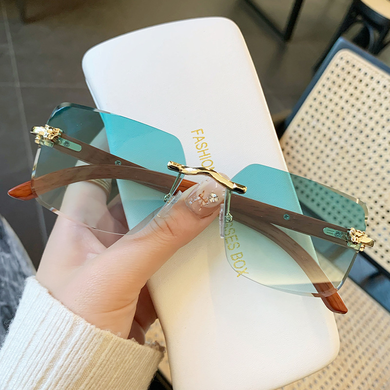 クロスボーダー角型サングラス縁なし木目パチンコ鏡脚サングラス男トレンドサングラス女