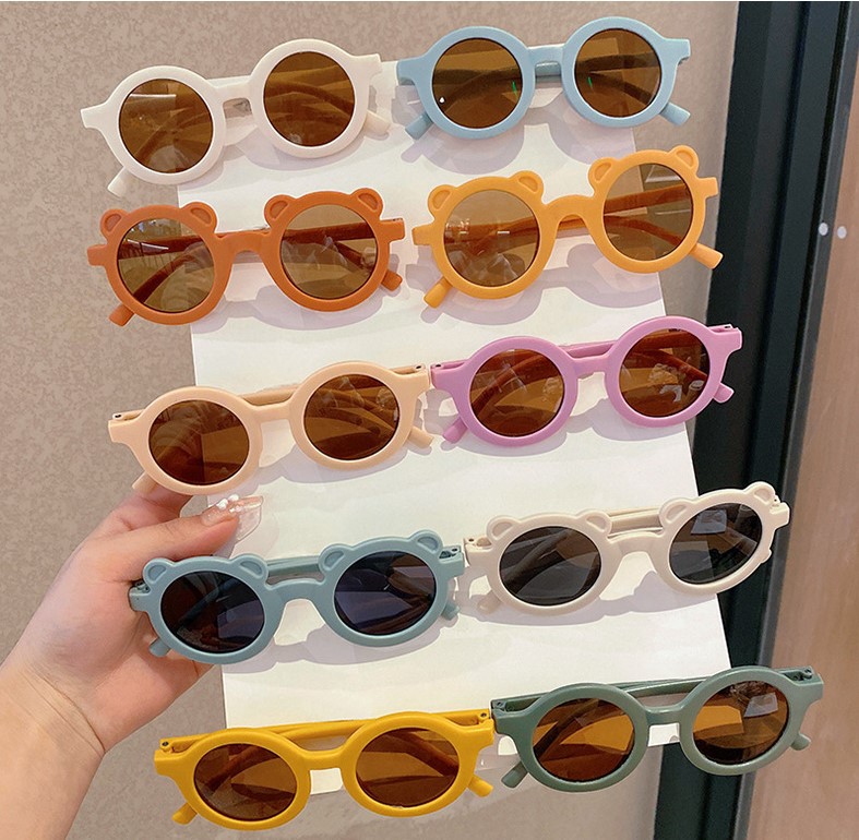 2021円枠熊子供サングラスかわいいキャンディー色子供写真メガネファッション赤ちゃんサングラス