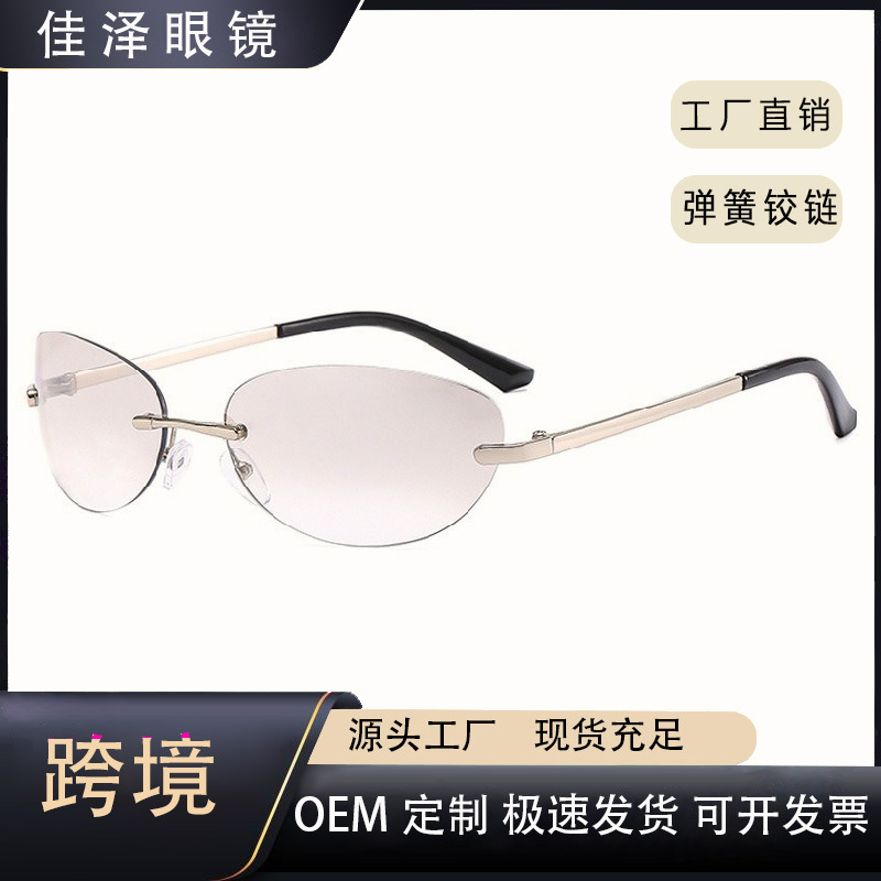 クロスボーダーのフレームレス楕円サングラスレトロ金属y 2kエッジカットサングラスギャル凹形サングラス女性