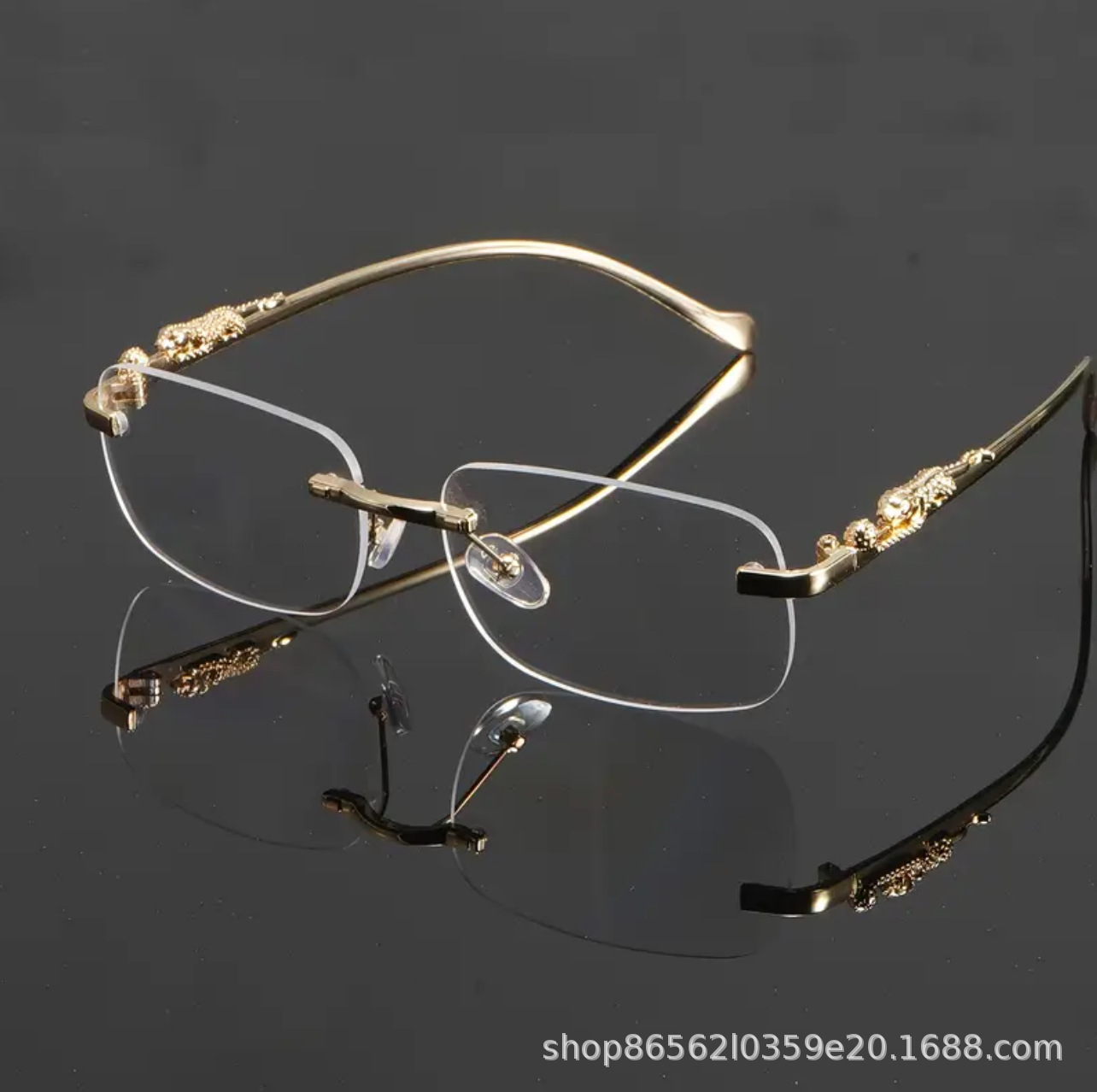 欧米のファッションの金色の虎の頭のサングラスの金属の四角形は枠がなくて辺を切ってサングラスのクールな男女のメガネの越境します。