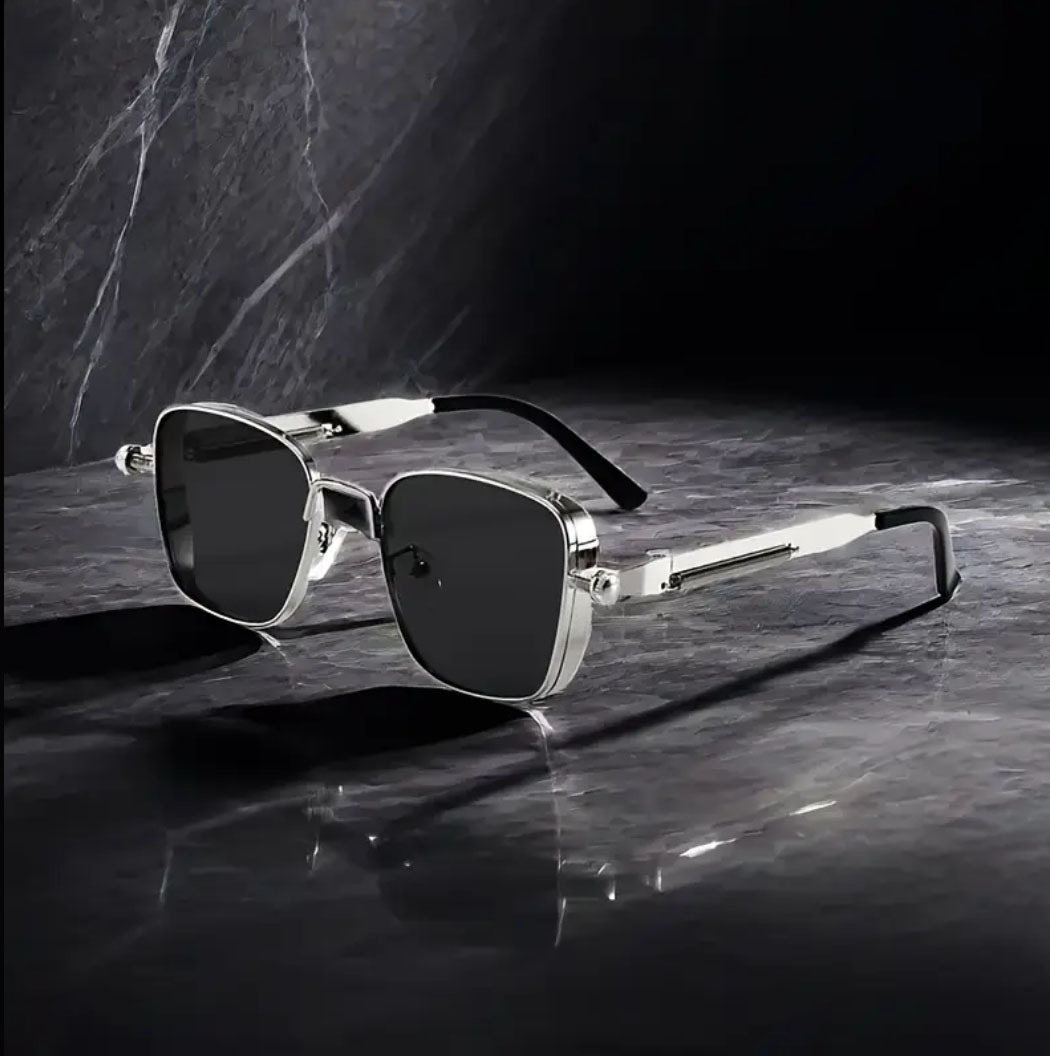 新型クロスボーダーレトロスクエアフレームスプリングレッグサングラスUVカットシルバーサングラスメンズパンクスタイルサングラス
