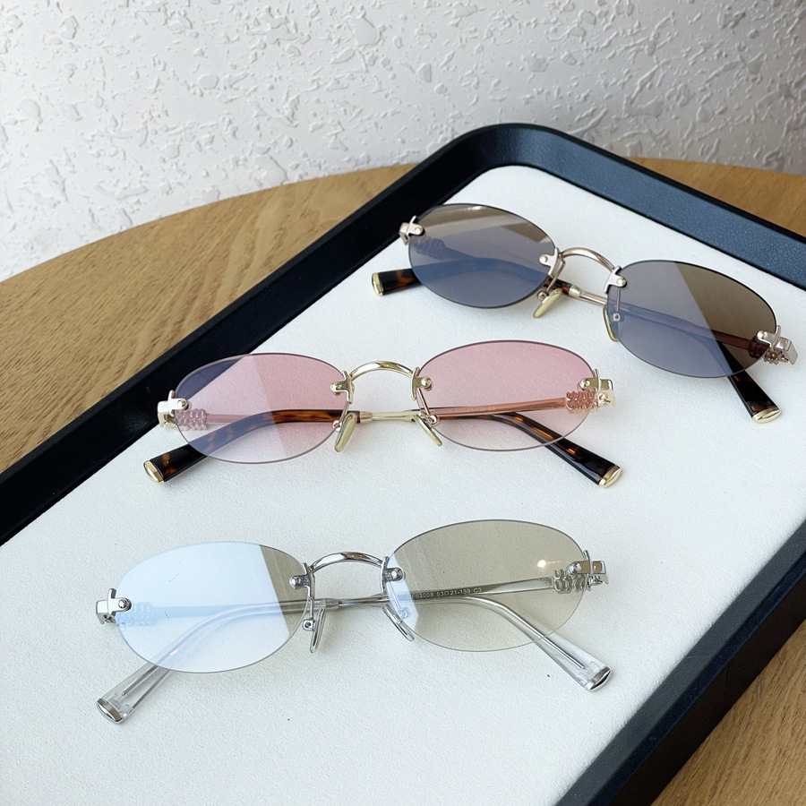 新しいフレームレスサングラス F ダイヤモンドオーバルフレームファッションサングラスハイエンドヨーロッパとアメリカのトレンディな小さなフレーム装飾メガネ