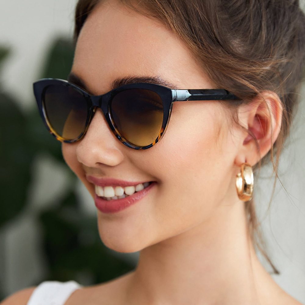 欧米風アマゾンレトロキャットアイサングラス男女兼用ホワイトブラウン個性派サングラスins風
