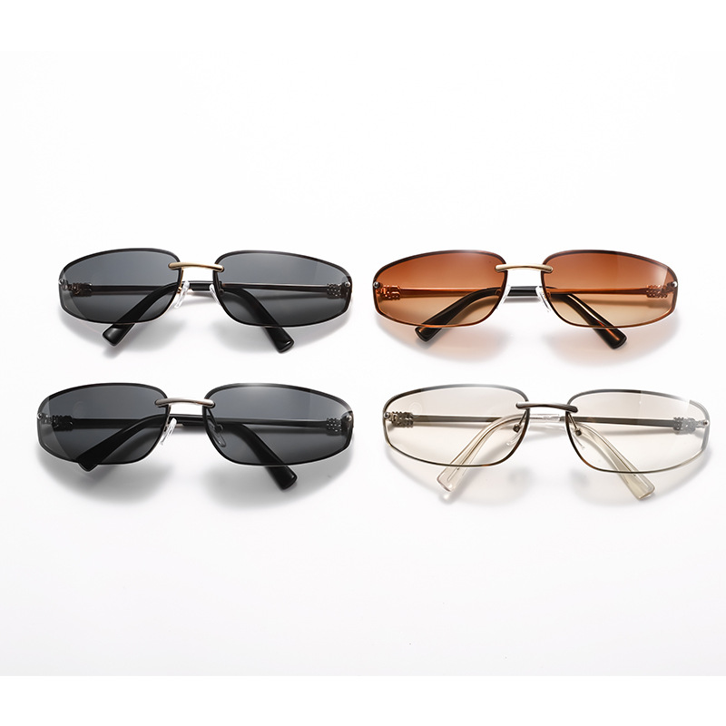 クロスボーダー新しいinsスタイルフレームレスエッジカットサングラスポリゴンファッションインターネットセレブサングラス女性のトレンディなストリートスタイルサングラス