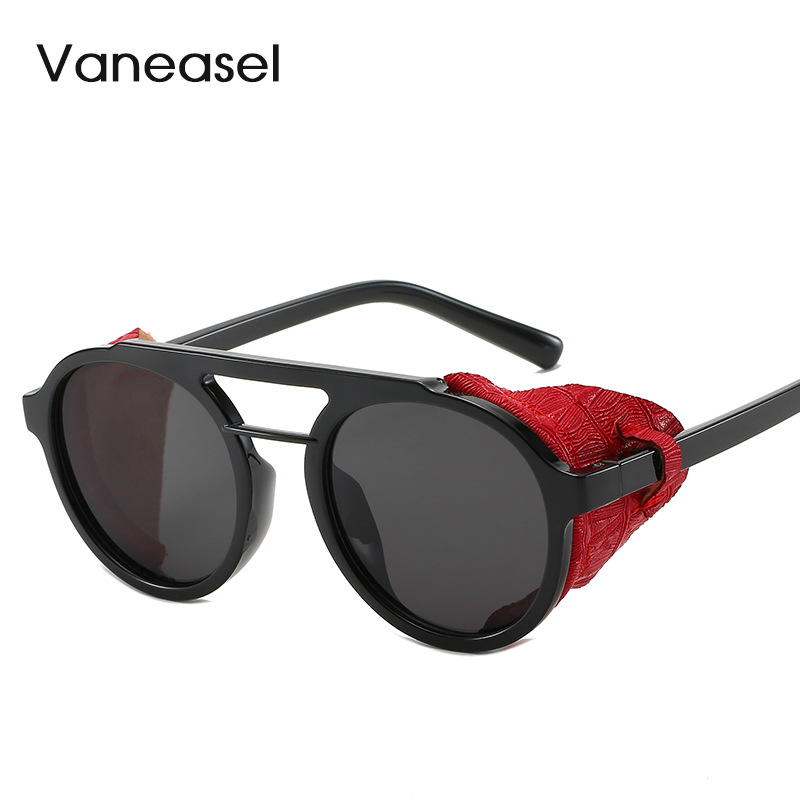 メーカー卸売り欧米円形サングラス男性潮サングラス蒸気パンク模造皮双梁サングラス97042
