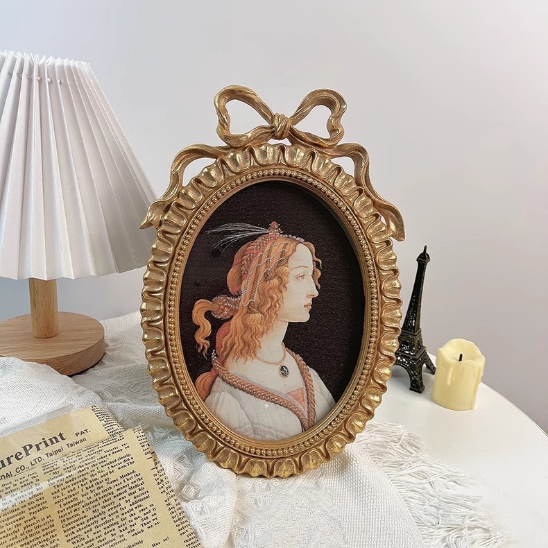 ヨーロッパ式蝶結び樹脂フォトフレーム長方形フォトフレーム創意透かし彫り台結婚祝い彫刻花レトロ置物
