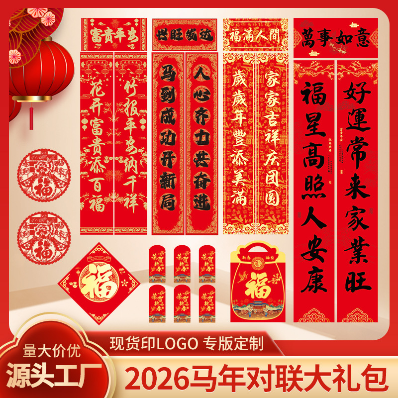 2026年新年対聯大特典パック、カスタム福袋、福文字入り、銀行・企業広告・保険会社向け、春節対聯、ロゴ印刷対応