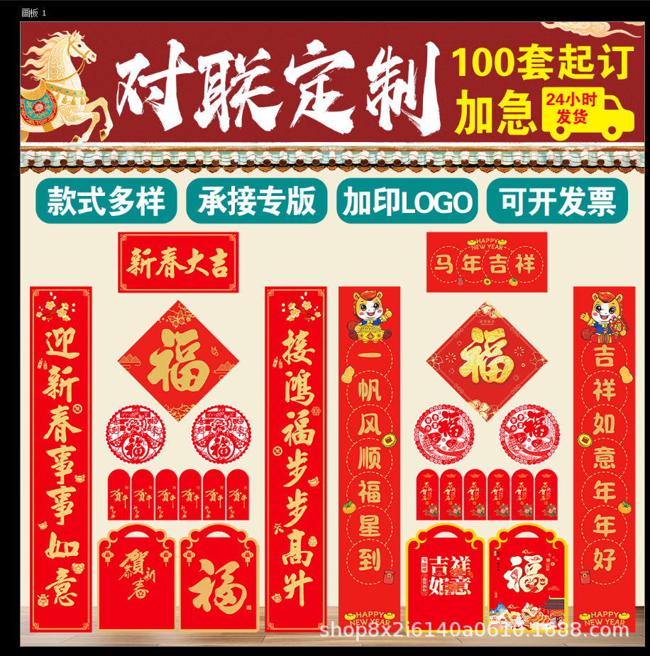 卸売露店用馬年春節春聯金箔広告対聯大特価パック、企業向け対聯セット、ロゴ印刷