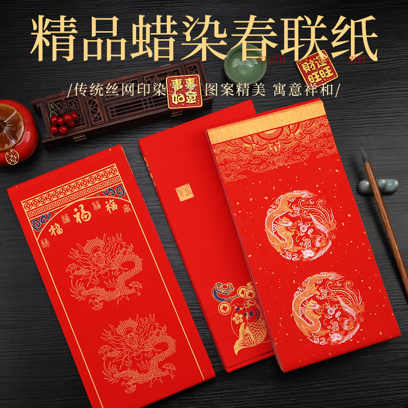2026年馬年春節用紙、厚手春節対聯、福字、蝋染龍鳳、金箔紙、白紙、手書き書道、宣紙対聯