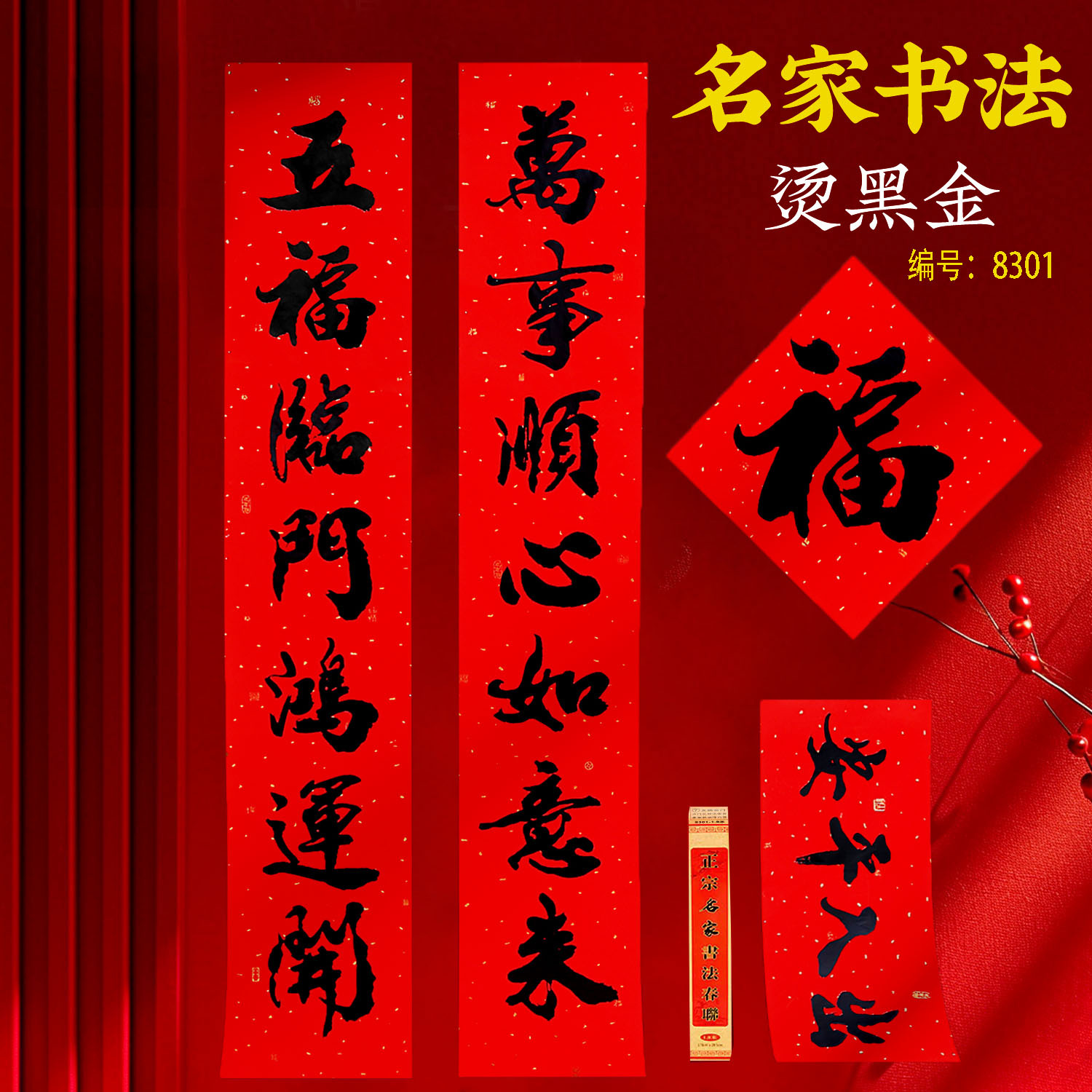 万年紅宣紙対聯 五言七言金箔書道春聯 春節卸売金箔貼りホーム春節装飾