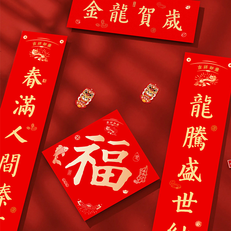 卸売り2024龍年対聯大ギフトバッグカスタム新年箔押し広告春聯セット新春対聯カスタム