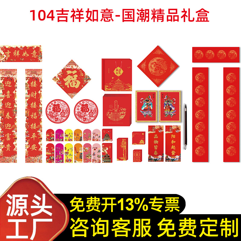 2025年新年春節ギフトボックスセット、蛇年、金箔押し、全面粘着ベルベット対句、新年グッズ、工場直販