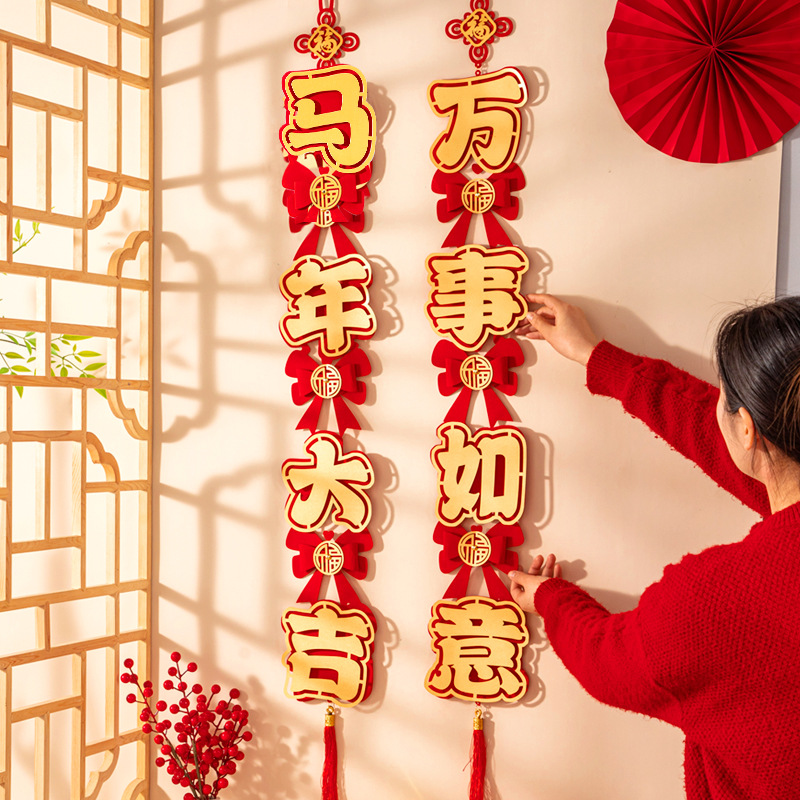 新年のベルベット四字対聯飾り、新年、新築祝い、新居、背景壁掛け飾り、春節のお祝い装飾