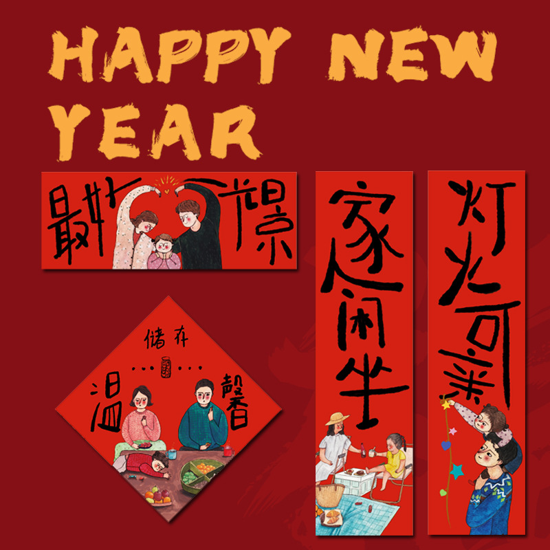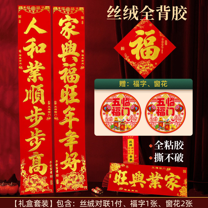 季節限定特価 春節対聯 ベルベット全面粘着金粉ギフトボックス 春節飾り物 ドア飾り 祝賀文具 年越し商品卸売
