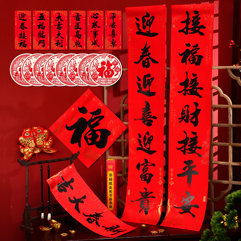 書道新年対聯2025蛇年新作春聯新春春節門福字門聯礼箱国潮セット