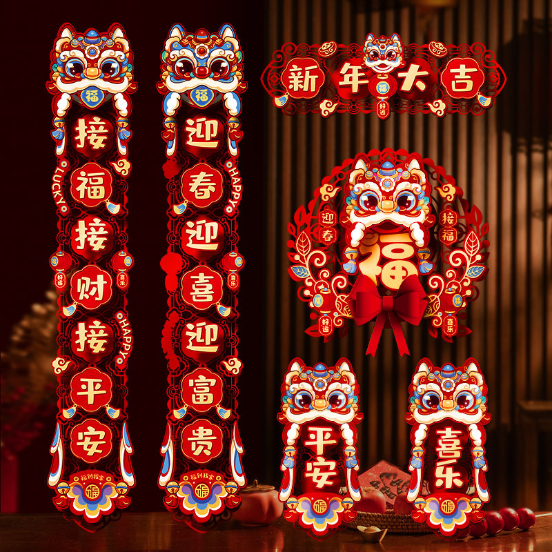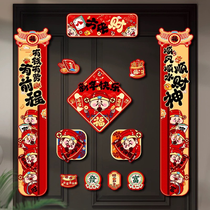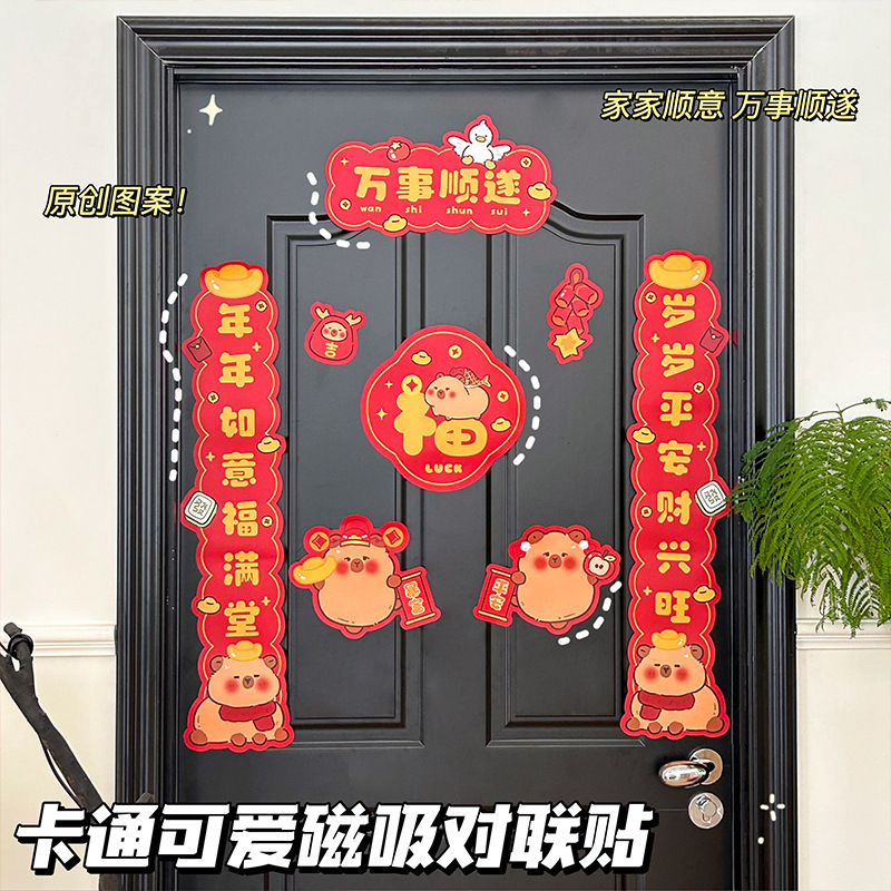 2025春節マグネット対聯セット創意アニメ新年春聯福字年越し団地入戸門聯装飾