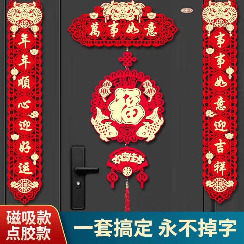 旧正月マグネット対聯2025蛇年新型新年家庭用福字絨毛春聯年越し室内装飾配置