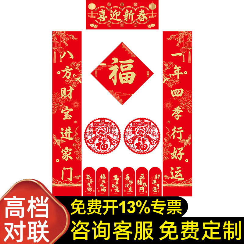 2026马年新款精品植绒烫金对联年货新年盒装春联大门门贴年货批发