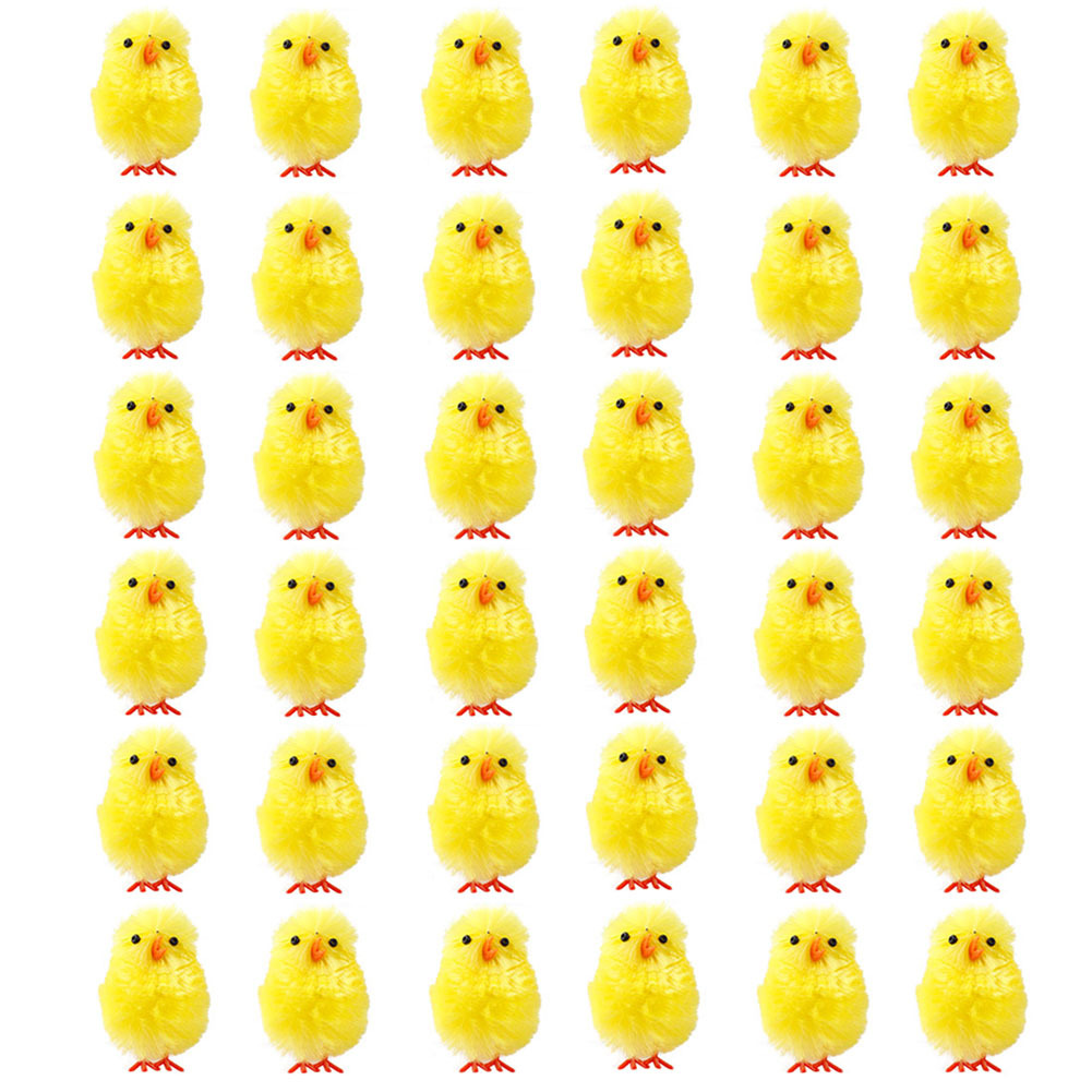 ミニイースターチキン36個 - 春と夏のお祝い用のカラフルなシェニールチキンデコレーション
