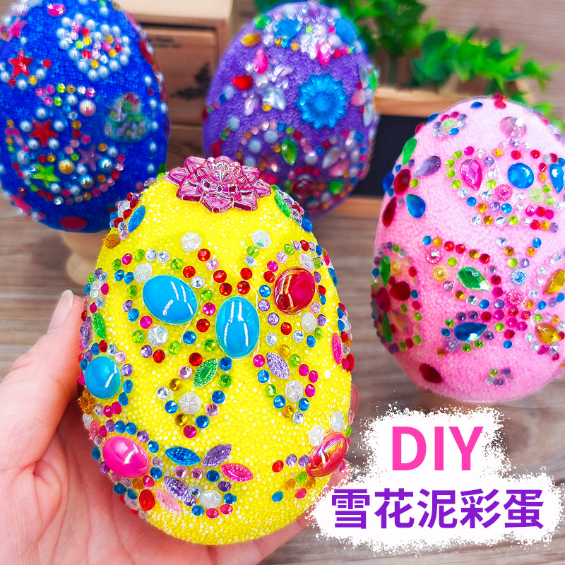 子供の卵を飾る幼稚園のイースターボールの卵の材料は創意的な手作りのdiy雪の花の泥のおもちゃの卵を包みます。
