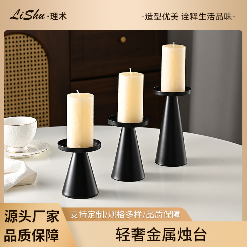 越境insアメリカレトロ黒鉄製燭台テーブル雰囲気感装飾置物ローマ柱長ろうそく台