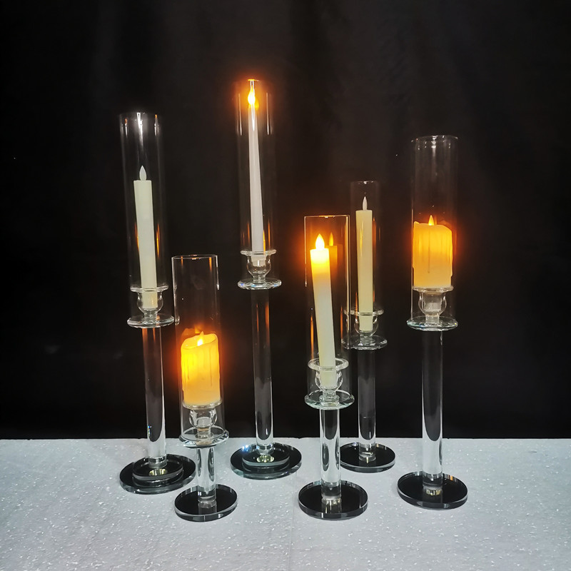 ヨーロッパ式シンプル透明ガラス燭台風灯ろうそくカップ防風燭台花瓶花器飾り現代卸売り