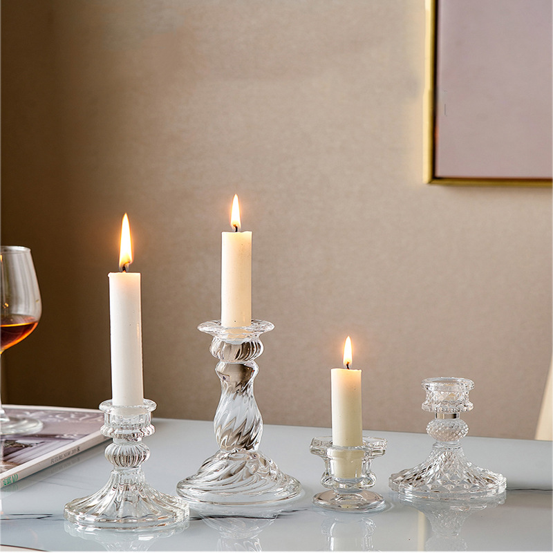 ヨーロッパスタイルのシンプルなins風ガラス燭台クリエイティブ家庭用ワックスベースロマンチックな食卓ろうそく台