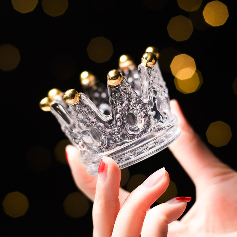 軽くて豪華なクラウンの燭台は金の透明なガラスの水晶の洋食の置物の道具のロマンチックなアロマクレヨンの棚の灰皿を描きます。