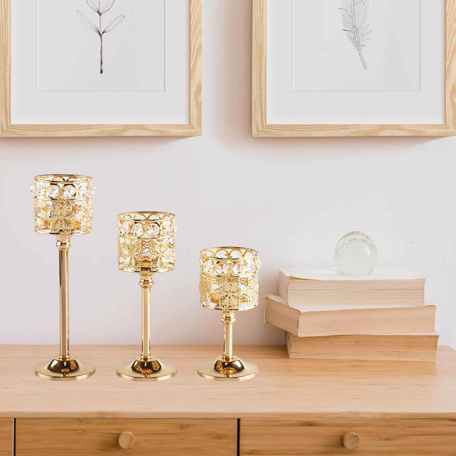 ヨーロッパ式ミニ水晶燭台創意金属置物ウェディングホテル家庭キャンドル夕食道具装飾品