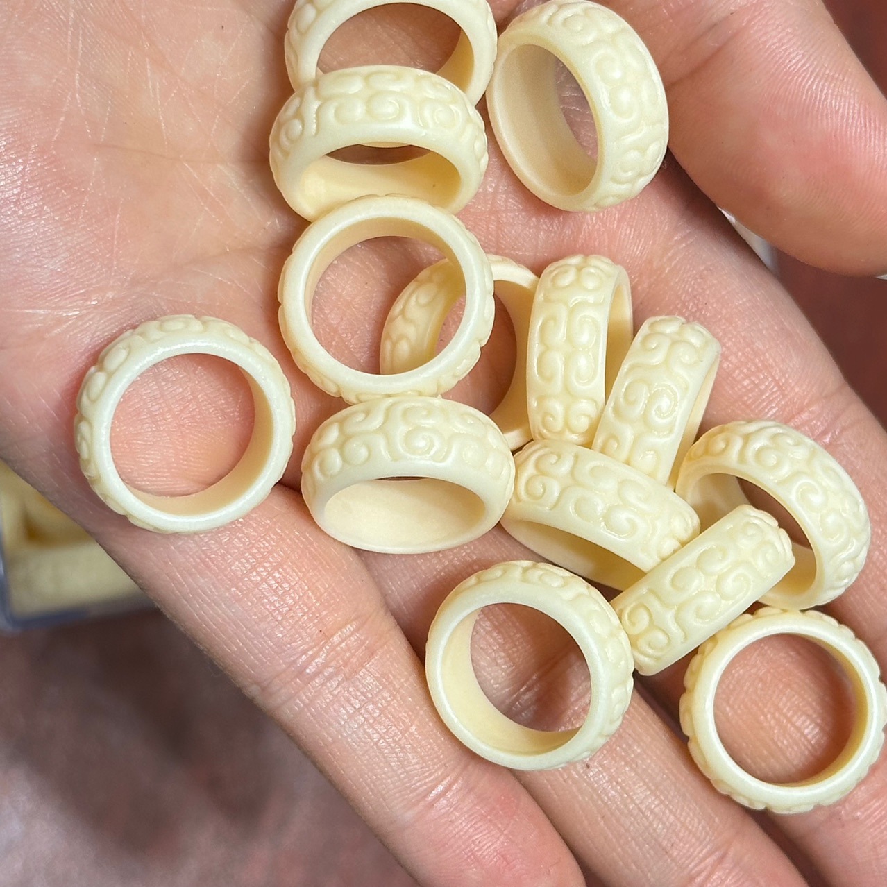 象牙果蓮花彫刻ビーズ、DIY菩提果ブレスレット、超キュートなアクセサリー、手持ち用アクセサリー