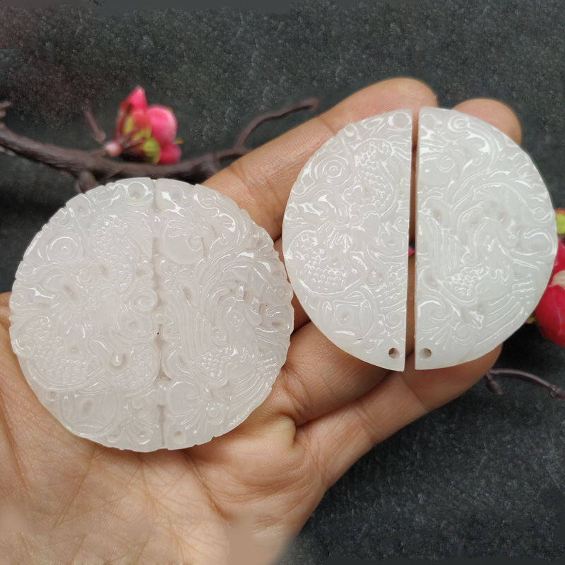 メーカー直販天然a品泰山墨緑玉龍鳳対ペンダント老年会販売プレゼント玉器