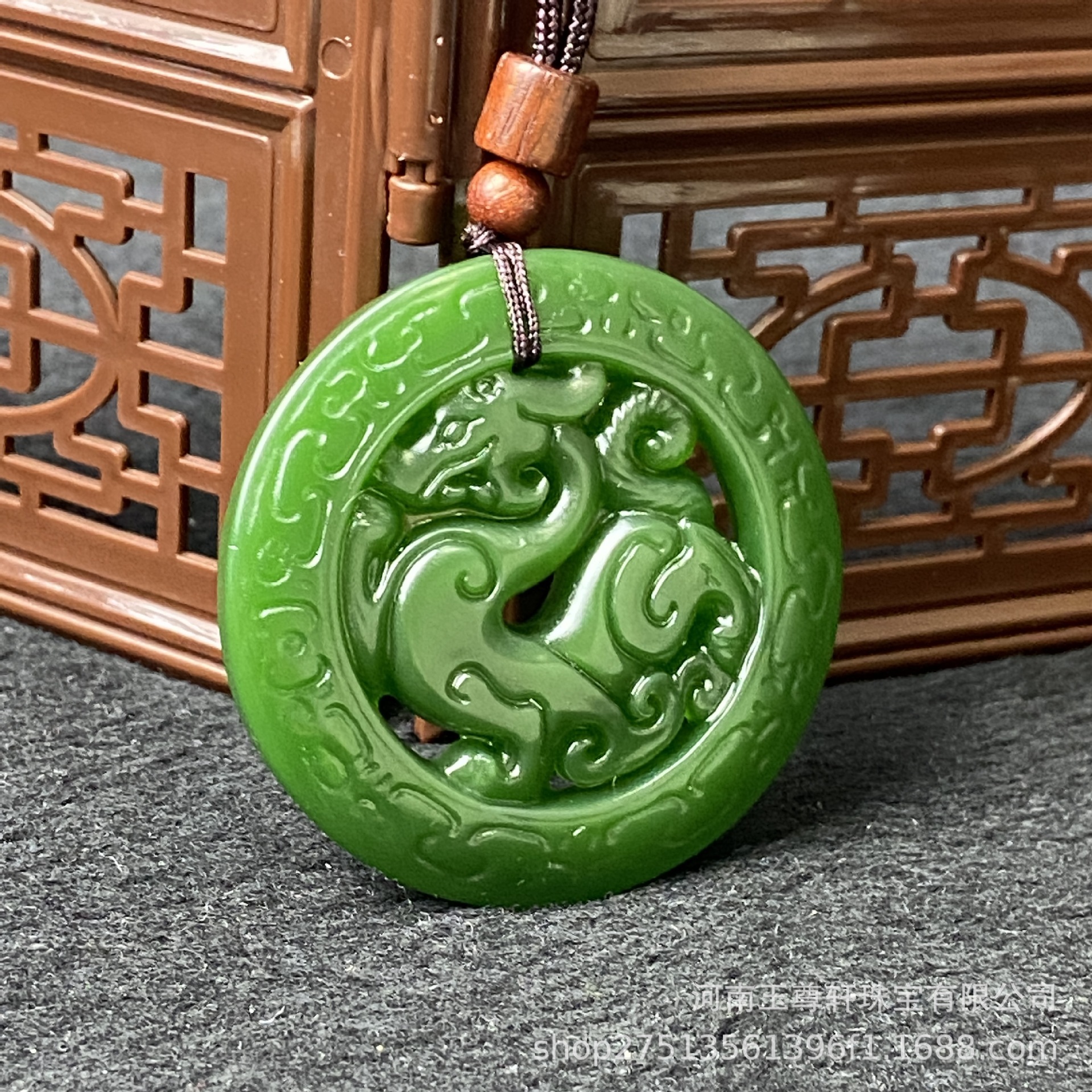 新疆外蒙材和田玉模造古龍ペンダント碧玉ホウレンソウ緑羊脂白玉抜き両面彫刻