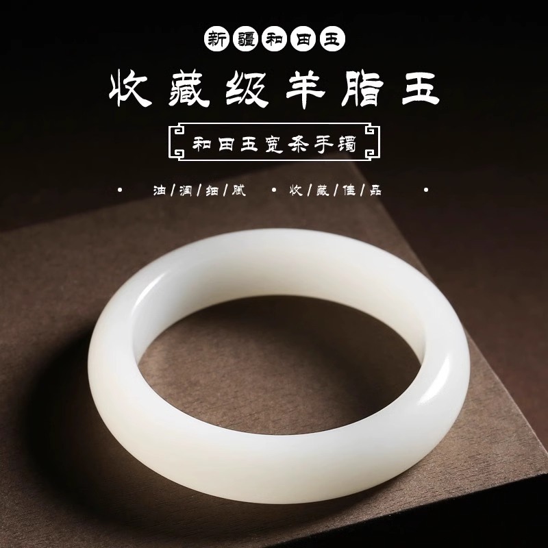 天然新疆和田羊脂白アフガニスタン玉白玉ブレスレット