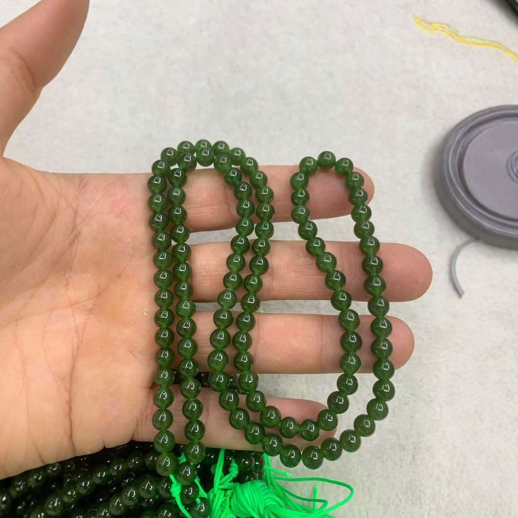 和田玉ロシア料碧玉陽緑6mm108仏珠無黒点品質が良いメーカー卸売り項目手串