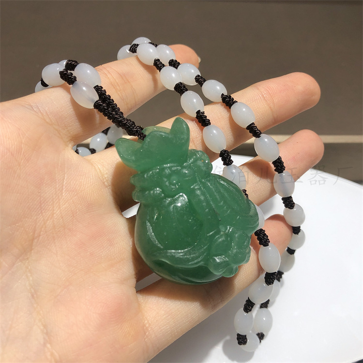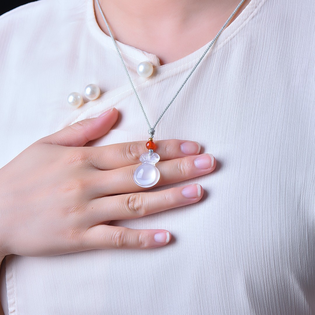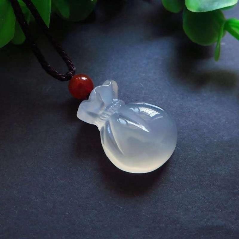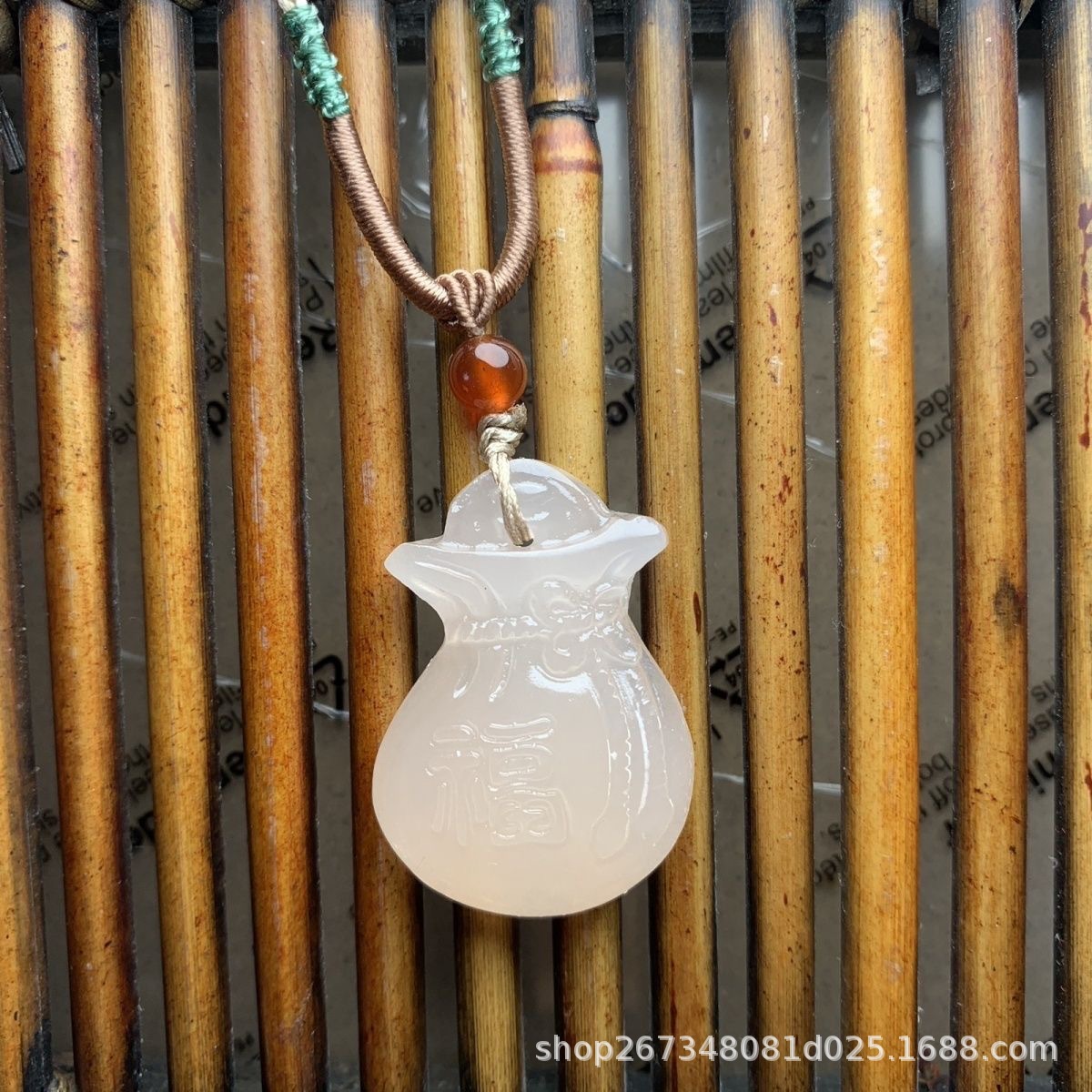 卸売り天然玉瑪瑙高氷銭袋ペンダント福禄玉髄白月光福袋ペンダントネックレスペンダント