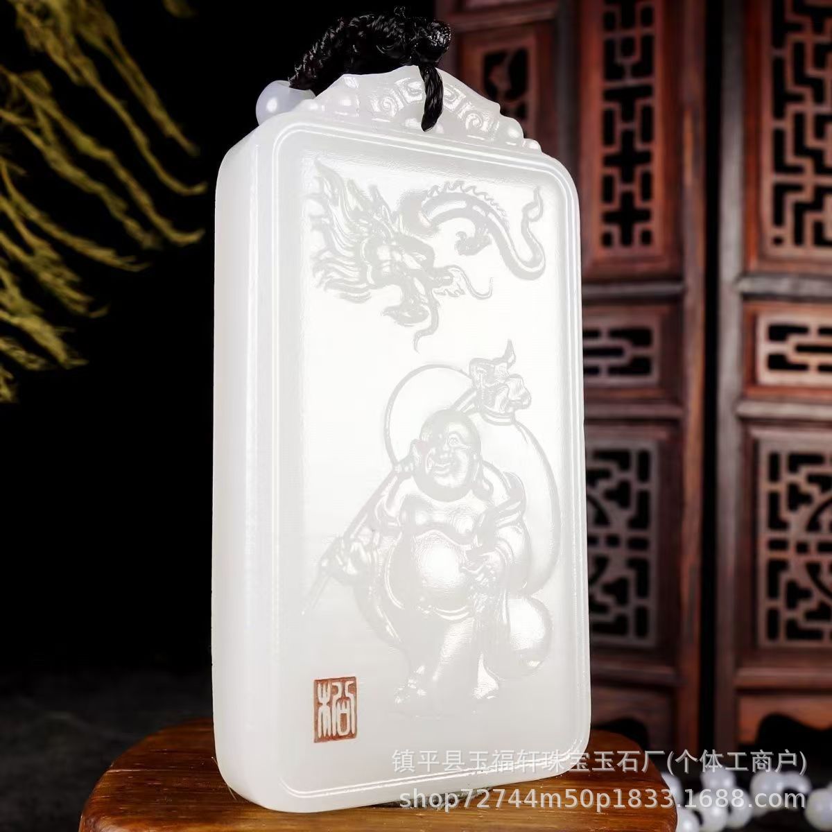 メーカー卸売新しい白翡翠ペンダントアフガニスタン羊脂白弥勒仏立ち大腹仏笑顔仏金袋仏翡翠ペンダント