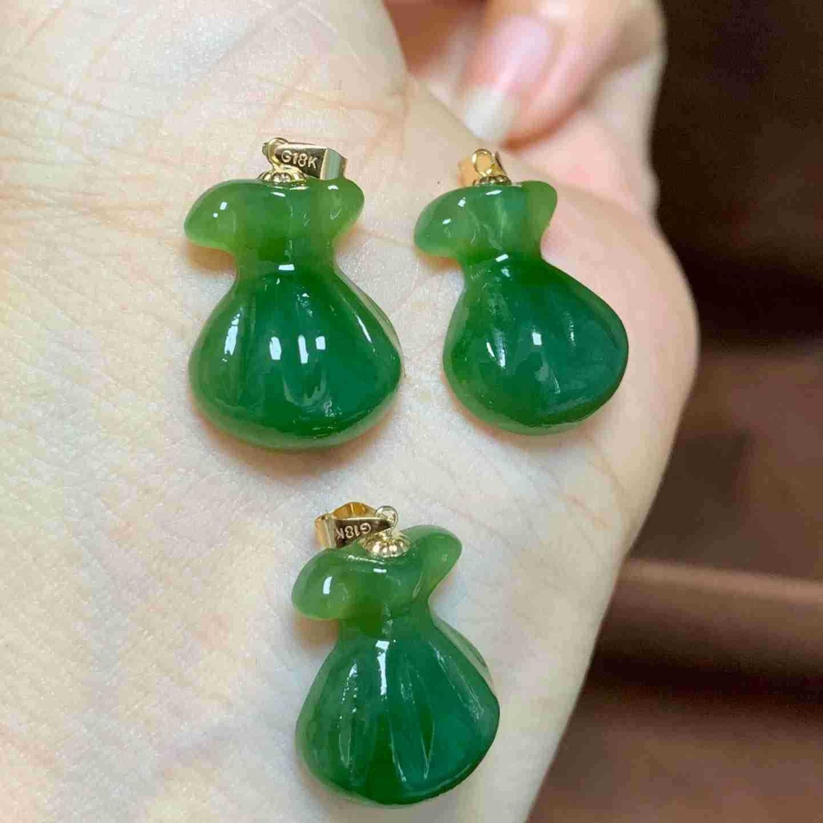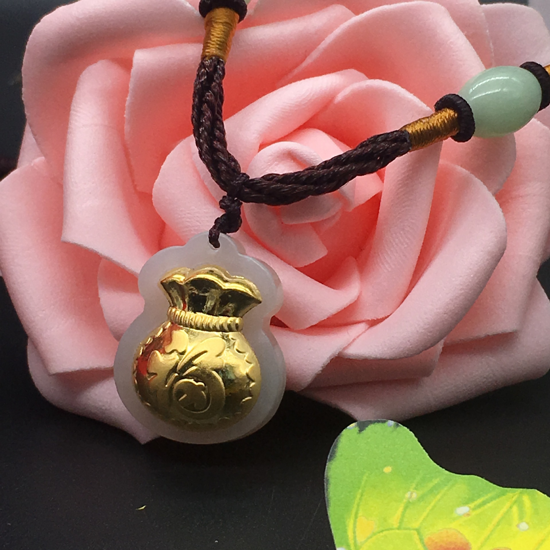 金と翡翠の福袋ペンダント、翡翠象嵌純金4Dマネーバッグペンダント、翡翠ペンダントネックレス、メーカー卸売