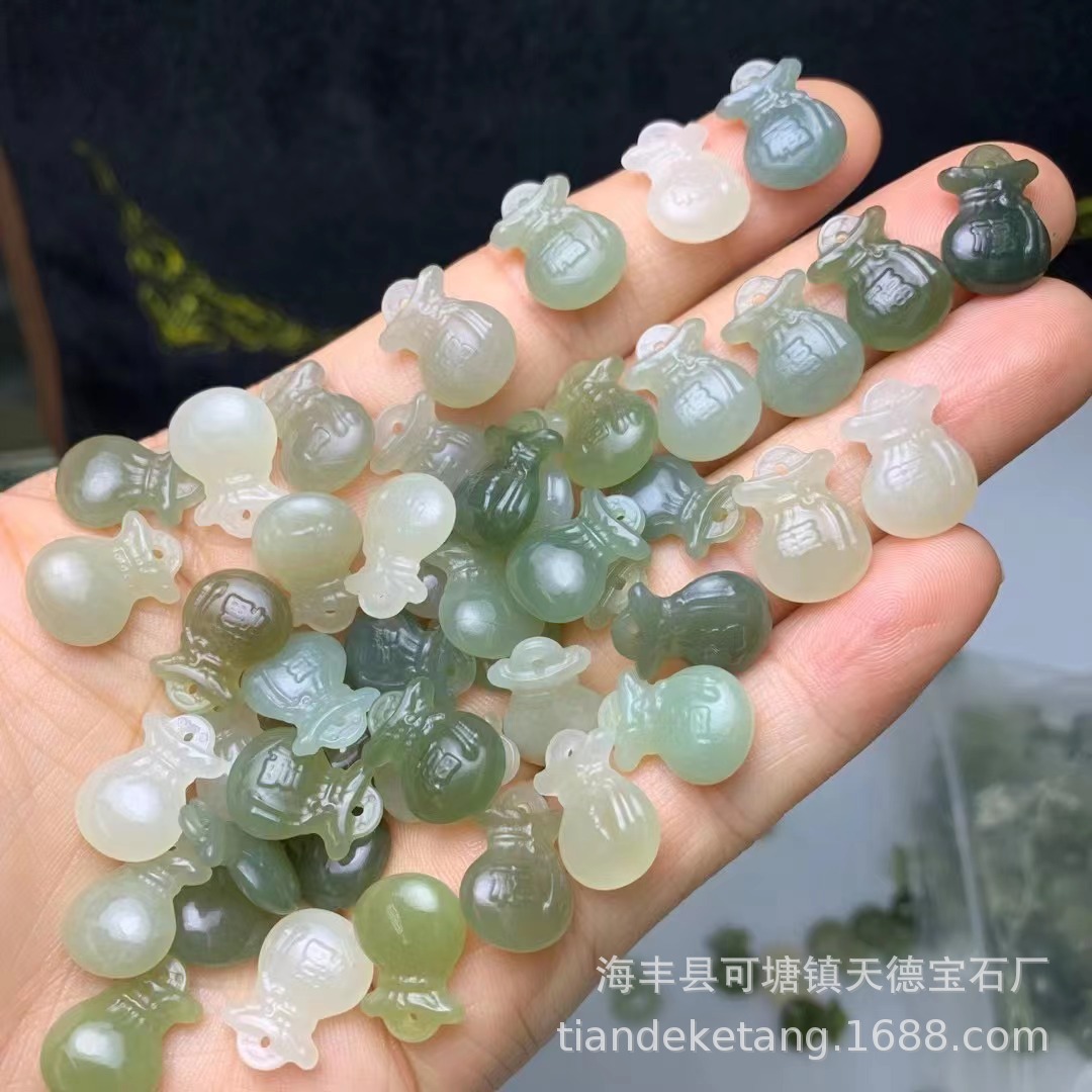 天然東陵玉福袋ペンダント緑の翡翠色の財布ペンダント