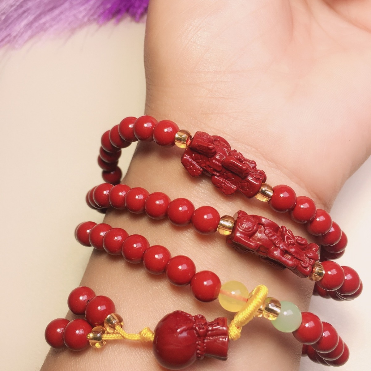 メーカー卸売り原鉱保真朱砂6mm + ダブルピストル + 銭袋三輪ブレスレットネックレス万事順調朱砂