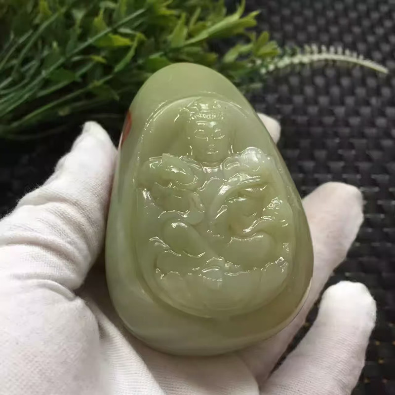 ソース天然アフガニスタン翡翠レンコンパウダーマネーバッグペンダント女性のホータン世代祝福ネックレス翡翠ペンダント卸売