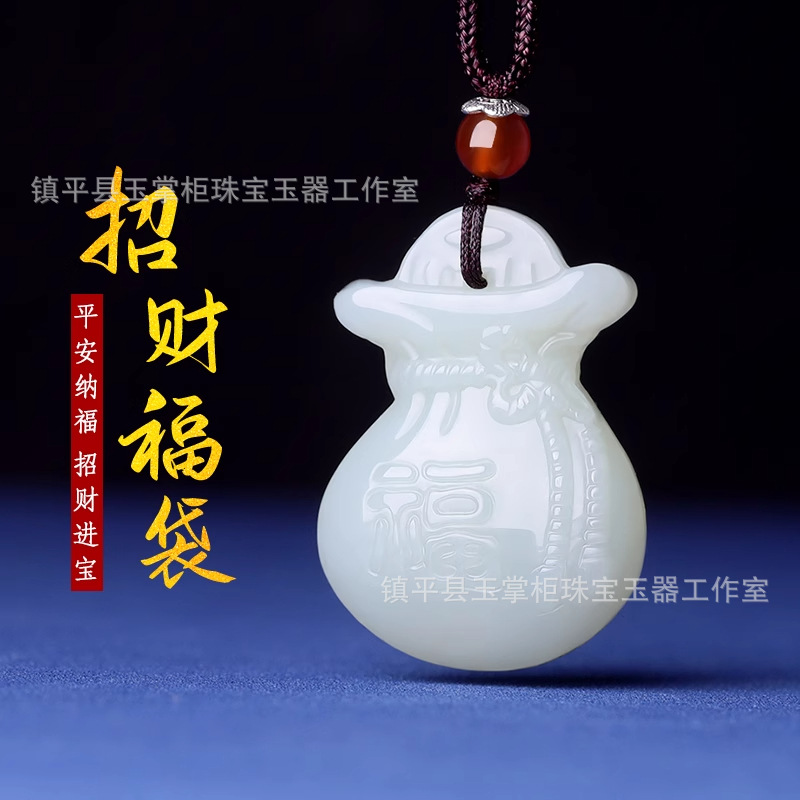 メーカー卸売アフガニスタン白翡翠福袋ペンダント翡翠ネックレス富のお金袋翡翠ペンダントキーホルダーペンダント